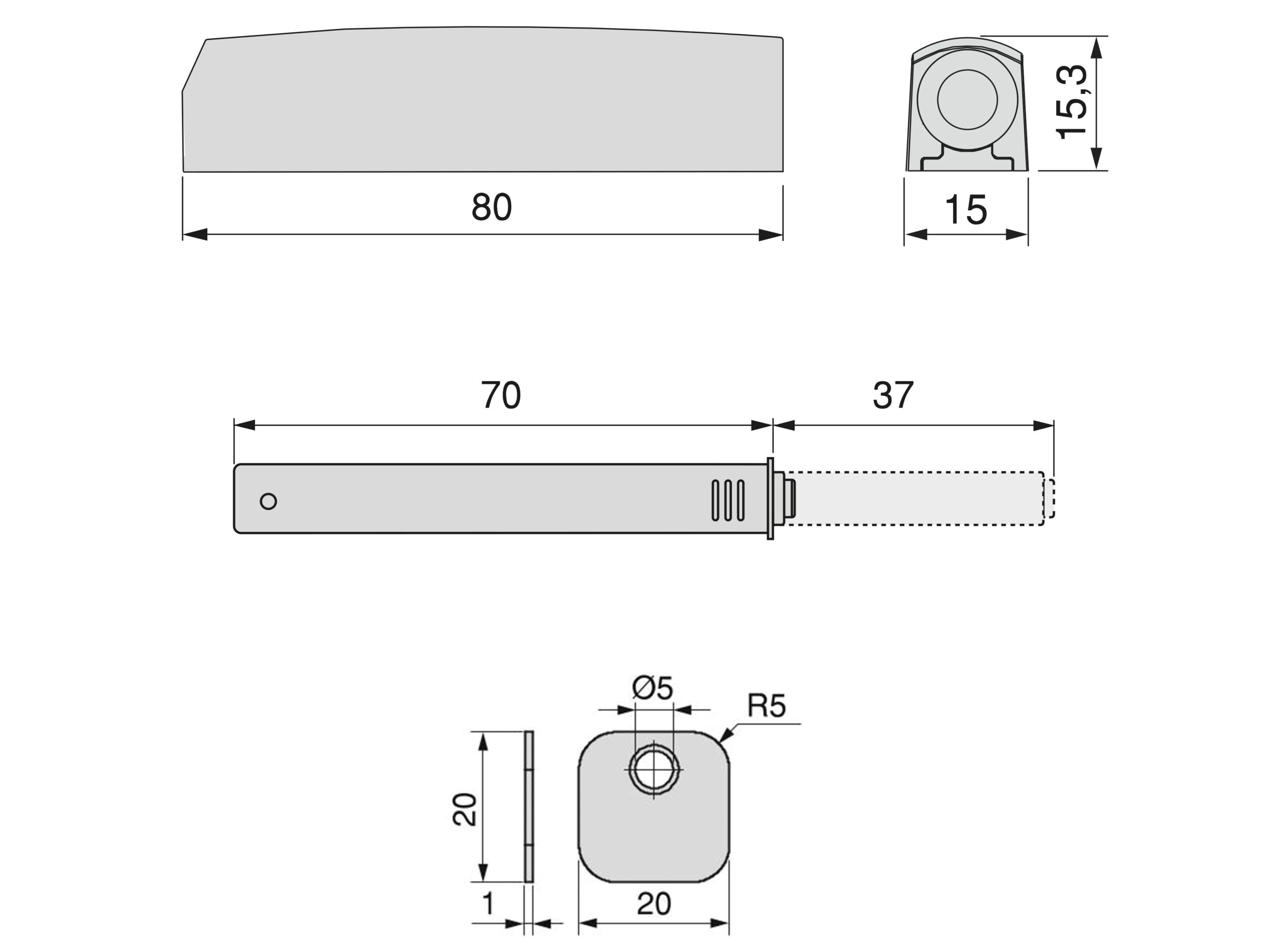 Stabil push-to-open døråbner til møbellåger, skabslåger, klapper og meget mere.