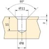 Dette opnås ved at skrue skruebøsningen ind i møbelets træpanel 8028001 kun én gang med den udvendige gevind ⌀8 mm og forblive der permanent. Møbeldelene forbindes derefter med de sædvanlige M6-skruer, som skrues direkte på skruemufferne.