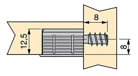 Forbindelsesbolten 8905205 indsættes i sidevæggen på et møbel, for eksempel, og forbindes til en excentrisk forbindelse på undersiden af en hylde.